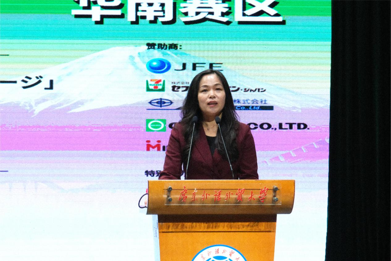 最后,广东外语外贸大学日语语言文化学院院长杨晓辉教授致闭幕辞。杨晓辉对大赛组委会、各赞助单位以及评委老师们多年来对华南赛区决赛的大力支持表达了谢意。并表示作为承办高校,接下来会继续努力办好比赛,为中日文化交流做出应有的贡献。