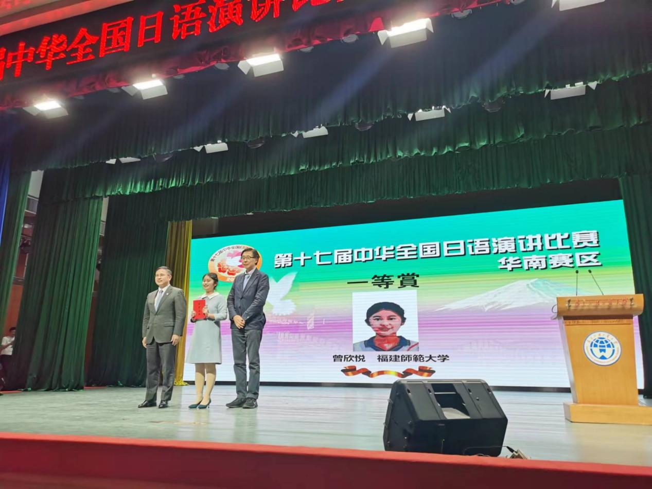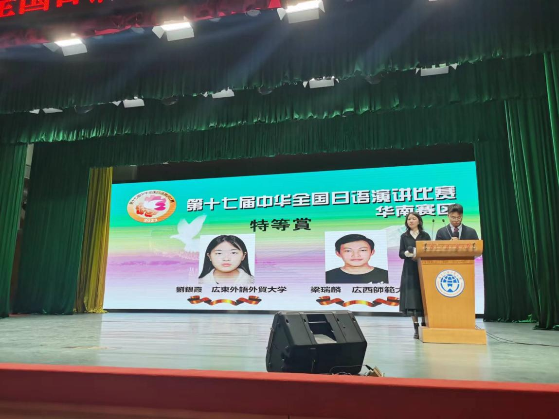 经过两轮激烈的比赛角逐,广东外语外贸大学刘银霞和广西师范大学梁瑞麟荣获特等奖,福建师范大学曾欣悦荣获一等奖,厦门大学施心兰、珠海科技学院苏雅雯、华南师范大学白决明、广东培正学院黄立熙、集美大学岳云涛等5名同学荣获二等奖,华南农业大学苏甲等22名同学荣获三等奖。广东外语外贸大学刘银霞同学和广西师范大学梁瑞麟同学将代表华南赛区参加明年3月于日本东京举办的决赛。