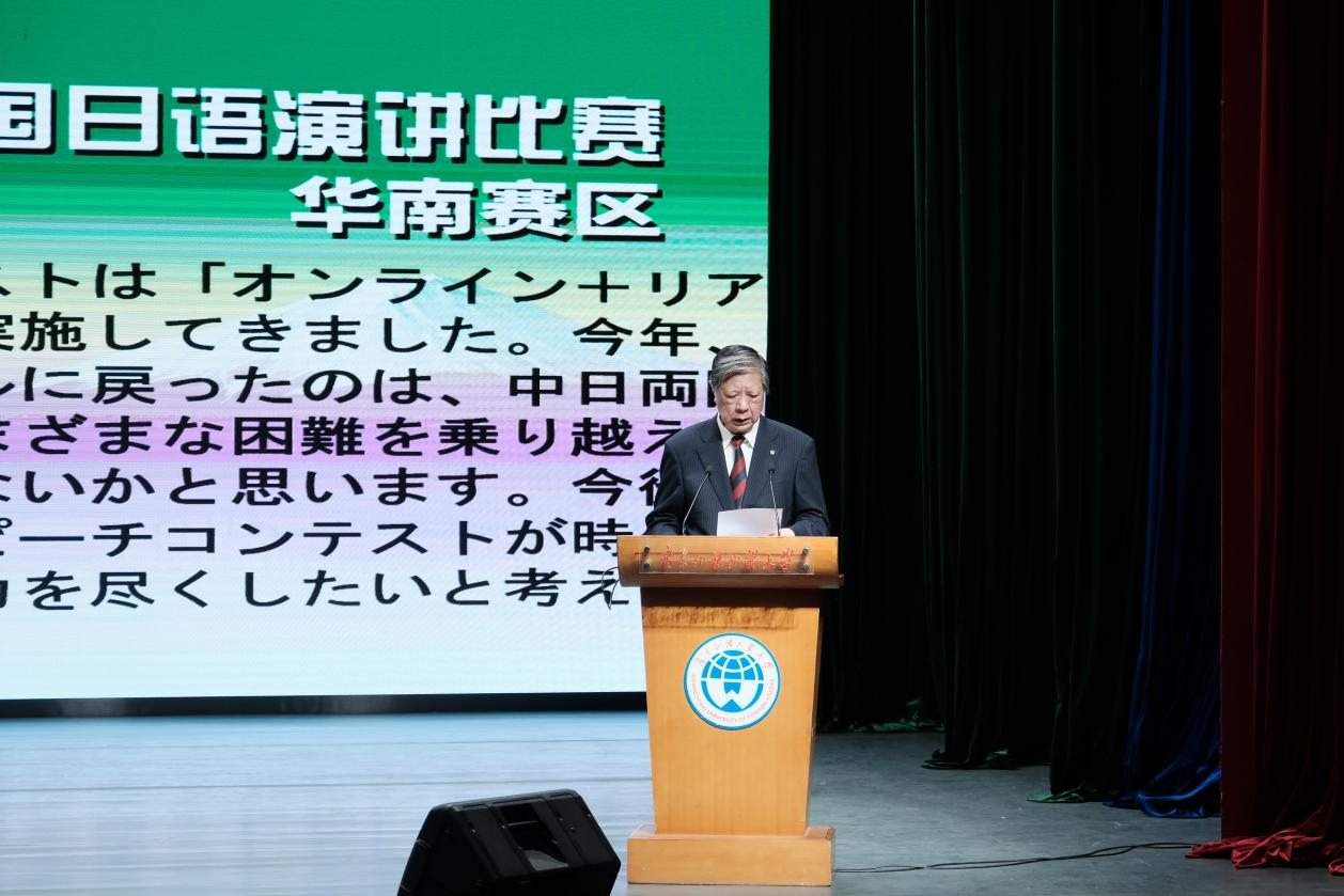 中国教育国际交流协会原副秘书长林佐平在致辞中表示,本次华南赛区决赛是疫情结束后本地区日语界的第一场高规格赛事,各级领导高度重视,相信本次活动能够延续既往的成功经验,取得丰硕成果。他希望本次赛事能够弘扬主旋律,引发青年人对当今时代的深刻思考,发出时代最强音。