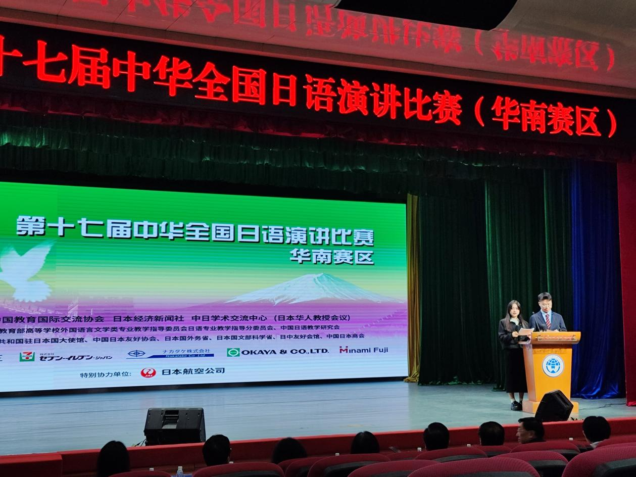 2023年11月26日,由中国教育国际交流协会、日本经济新闻社、中日学术交流中心(日本华人教授会议)共同主办,教育部高等学校外国语言文学类专业教学指导委员会日语专业教学指导分委员会、中国日语教学研究会协办,广东外语外贸大学承办的第十七届中华全国日语演讲比赛华南赛区决赛圆满落幕。今年是疫情后首次全面恢复线下办赛,来自广东、广西、福建、海南4省市高校的30位选手同台竞技。