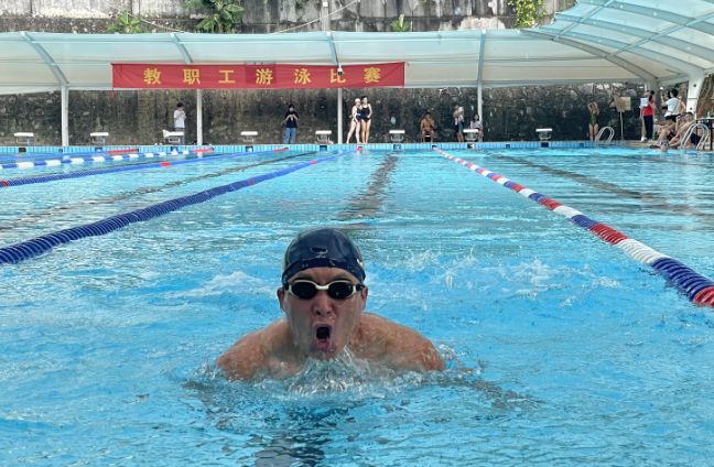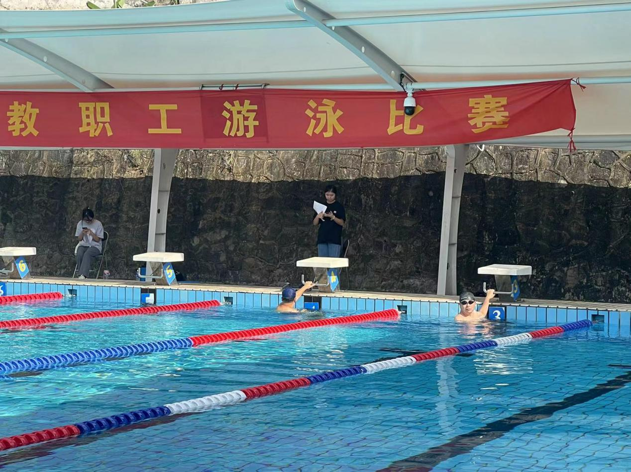 10月12日,由我校工会主办、体育部承办的2023年教职工游泳比赛在北校区游泳馆举行。本次比赛有17支队伍55名运动员参赛,比赛项目有50米蛙泳、100米蛙泳、50米自由泳、100米自由泳、50米仰泳、50蝶泳以及4*50米自由泳接力。我院工会积极组织代表队踊跃参加比赛,参赛队员共9名。队员们发扬团结协作、顽强拼搏的体育精神,在泳池中劈波斩浪、“泳”往直前,以总分77分的出色成绩勇夺冠军,展现出他们高超的游泳技巧与强大的精神动力,为我院再添荣誉!