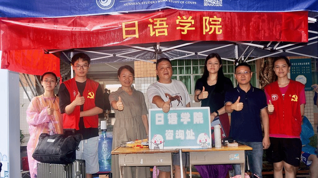 本网讯 9月2日,广东外语外贸大学日语学院迎来了2023级新生。日语学院组织志愿者有序开展迎新活动,学院党委书记周秀娇、副书记连勇,辅导员朱浩文、江树森等一行到迎新点慰问迎新志愿者,并走访学生宿舍,与新生共同分享开学的喜悦。