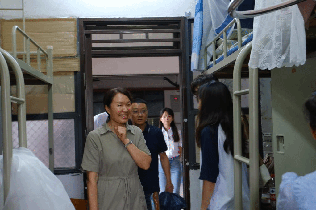 (周秀娇一行走访新生宿舍)