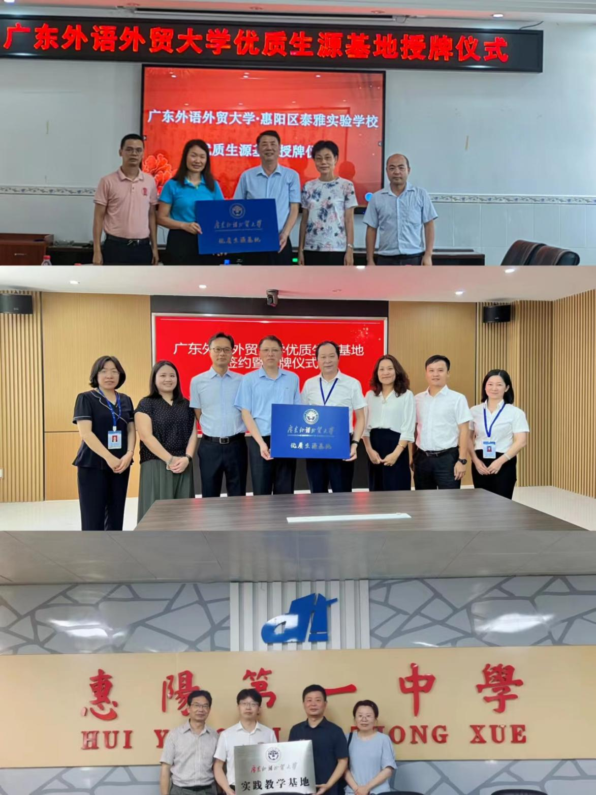 此外,学院党委书记周秀娇,副院长张志刚和程亮分别带队在惠州泰雅实验学校、惠州华罗庚中学、惠阳一中开展深入调研并签订“优质生源基地”协议、“校外实践教学基地”协议和举行授牌仪式,进一步促进了我校与惠州重点高中之间嵌入式课程与常态化合作机制的建设。