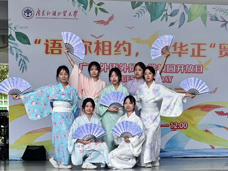 在开放日上,广东外语外贸大学的社团表演环节令人眼前一亮,吸引了众多学生和家长驻足观看,沉浸式感受广外人文风采的无穷魅力。我院日本舞蹈队作为社团表演的压轴节目,以优美的舞姿将开放日活动推向高潮,给大家带来一场视觉与听觉的盛宴,展现了广外日语学子青春洋溢的精神面貌和育人成效,赢得现场观众的阵阵掌声和喝彩。