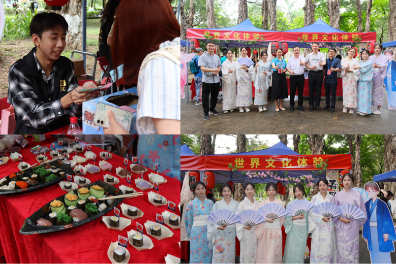 在我院的“世界文化体验”摊位上,绚丽多彩的和服、色香味俱全的寿司及日式零食饮品、精心准备的打卡立牌、趣味十足的游戏以及精美的文创纪念品,让前来的考生和家长一饱眼福、口福,同时也了解了日本的文化特色。