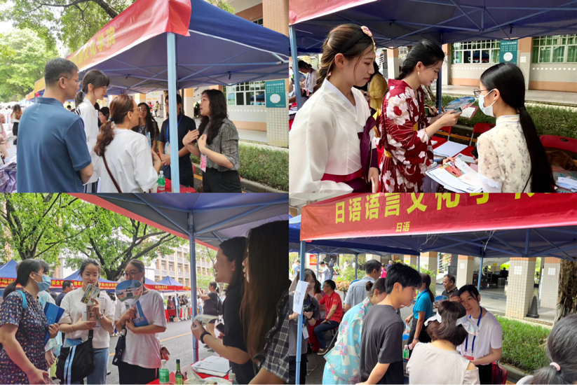 6月24日,广东外语外贸大学校园开放日在白云山校区举行。在本次“大学开放日”活动中,我院向考生及家长们系统介绍了广外日语专业的人才培养特色,通过特色美食体验、和服体验、日语小游戏等活动展现我院的专业特色以及日本文化,吸引了众多考生及家长。