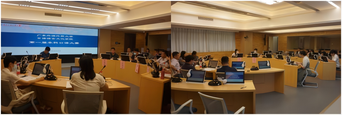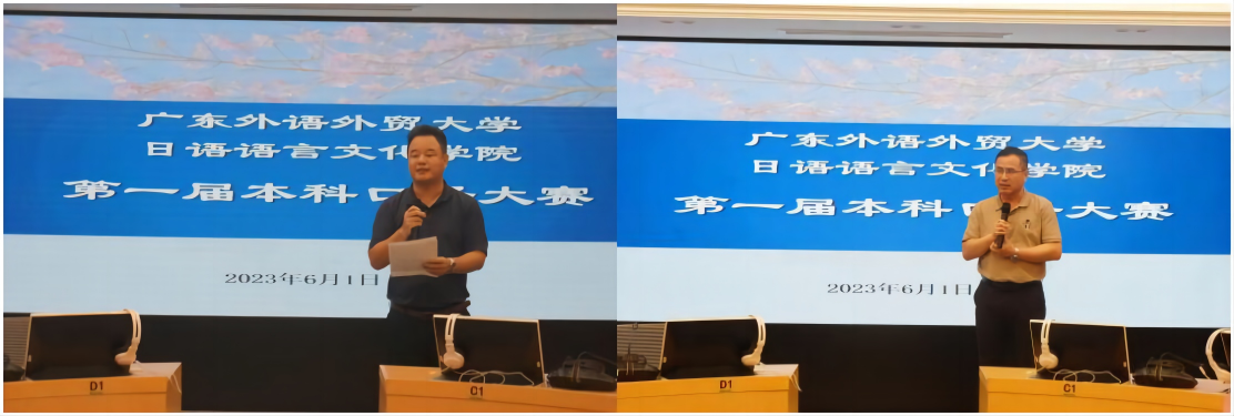 2023年6月1日下午,广东外语外贸大学日语语言文化学院第一届本科生日语口译大赛决赛成功举办。本次大赛旨在展示日语专业的同学们在日语口译方面的学习成果,激发大家对日语口译的学习热情,促进同学之间的相互学习和交流。比赛分同声传译(日译中)和连续传译(中译日)两部分进行,上半场同声传译于六教A210举行,下半场连续传译于六教A301举行。日语语言文化学院翻译系全体教师出席了本次大赛,全明、张秀强、庞焱、刘燕、刘先飞、崔勇和小林清史老师担任评委,日语2021级6班欧阳雅熙同学担任主持。