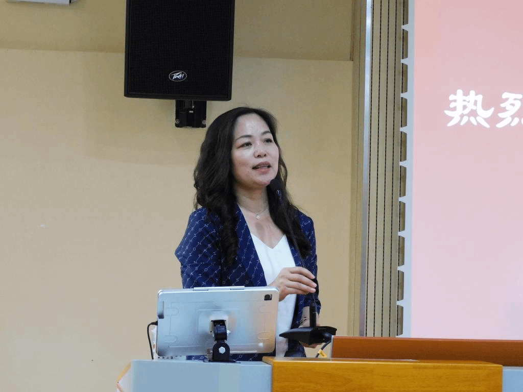 杨晓辉院长向伦教中学的师生介绍广外创办的悠久历史。她以亲切的语调欢迎道:“我作为广外人,我感到非常骄傲。如果在座的同学们喜欢日语,喜欢广外,那我们欢迎你的到来。如果你愿意来,那我们就愿意等!”