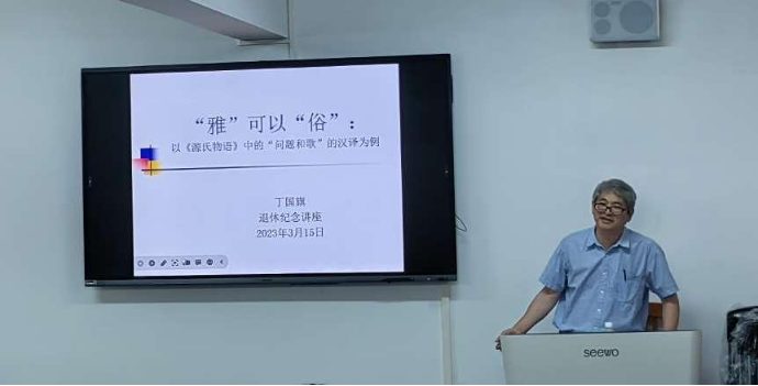 最后,丁国旗教授为学院教师和学生做了主题为“‘雅’可以‘俗’—以《源氏物语》中的‘问题和歌’的汉译为例”的精彩讲座,荣休仪式也圆满落下帷幕。
