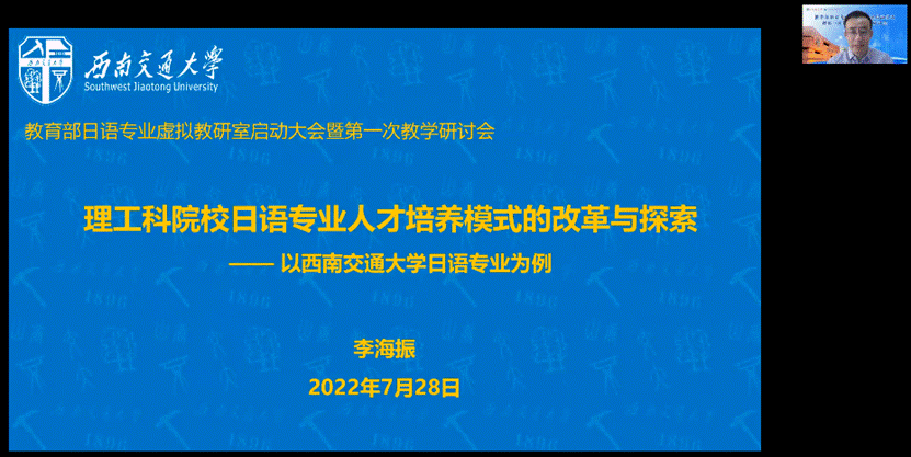 在研讨会上,北京外国语大学日语学院院长周异夫教授、西安外国语大学日本文化经济学院院长毋育新教授、厦门大学外文学院吴光辉教授、广东外语外贸大学日语语言文化学院暨亚非语言文学学院院长陈多友教授、上海外国语大学日本文化经济学院院长高洁教授、哈尔滨师范大学东语学院院长王琪教授、西南交通大学日语系主任李海振副教授等7位专家分别从宏观、中观及微观层面分享了日语专业建设理念、方案,以及各自的实践经验与成果,并就“日语专业虚拟教研室”的建设与发展提出了宝贵意见。