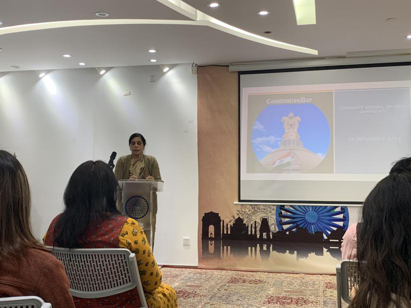 本网讯 11月26日,日语学院、亚非学院(筹)印地语专业学生参加了由印度驻广州总领事馆举办的“庆祝印度宪法日”活动。印地语系师生与印度友人齐聚印度驻广州总领事馆中,共同庆祝印度宪法日,了解印度宪法的由来,理解其背后的历史传承与深刻影响。