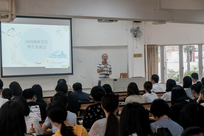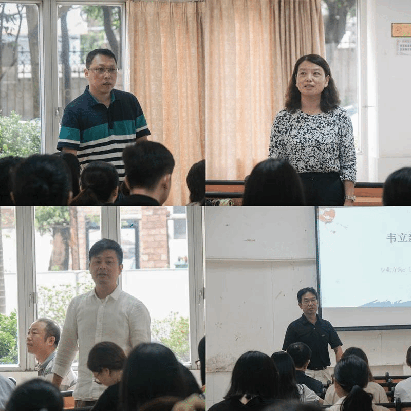 导师自我介绍环节中,各位导师分别就自己的研究方向及主要课程进行介绍,并对2019级新生的到来表示热烈欢迎。