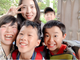 与日本小学生在一起