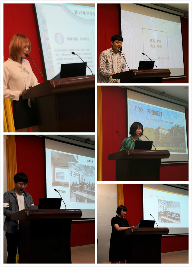 颁奖环节过后,亚洲校园三国学生代表上台发言,分享了他们在亚洲校园的收获、学习经历,以及中日韩三国学生一起学习的乐趣。日韩留学生们还讲述了他们对于广外,亚洲校园和中国的印象,书写了致广外的一封信,表达了他们对于广外,亚洲校园和中国的喜爱和不舍之情。展现了中日韩三国学生的深厚友谊以及亚校文化的独特风采。