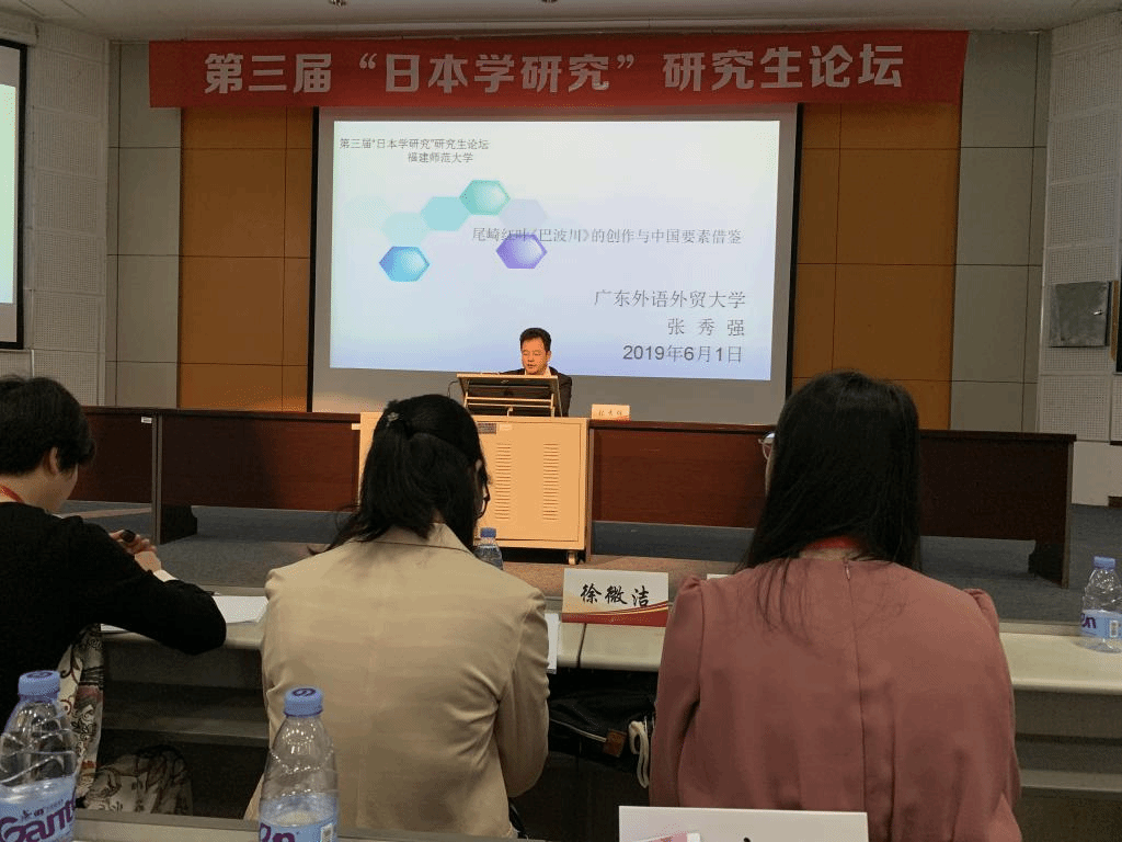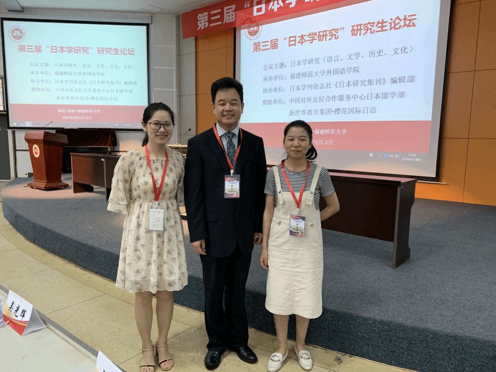本网讯 2019年6月1日至2日,第三届“日本学研究”研究生论坛在福建师范大学召开,会议由福建师范大学外国语学院主办。来自全国12所高校的日本学研究领域的专家学者、博士、硕士研究生就日语语言学、日本文学、日本历史、日本文化等主题展开深入研讨。我院副院长张秀强教授与两名硕士二年级研究生代表参加了此次会议。