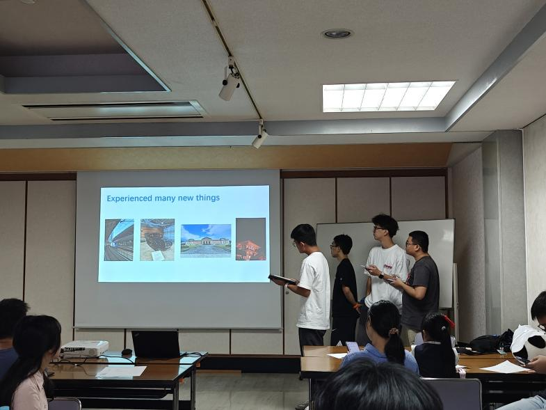课堂结束后,就到了各组成员的发表时间,将本次在日本的所见所闻向大家介绍。从分享此行的奇闻趣事,到抒发内心的真情实意,配合大家拍下的图片与视频,发表会十分有趣,精彩纷呈。