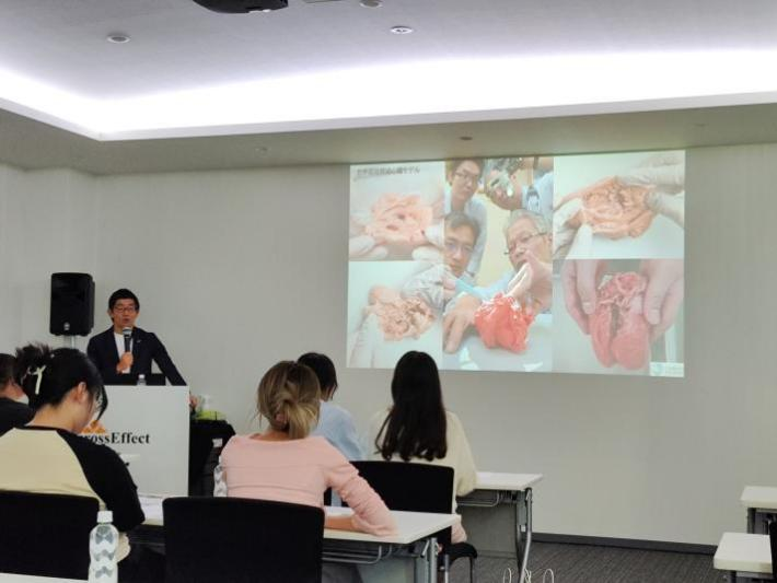 7月26日下午,访学团前往日本企业——株式会社クロスエフェクト进行参观。由竹田正俊社长介绍了公司的基本情况及3D打印产品,并带领同学们前往公司内参观,实际触摸到了3D打印制作的人体器官仿制品。该公司生产的3D打印制品获得了“第5届日本制造大奖”,当时的内阁总理大臣(首相)安倍晋三亲手体验了公司制造的3D打印心脏,让访学团印象深刻,深深体会到了日式企业的运作。