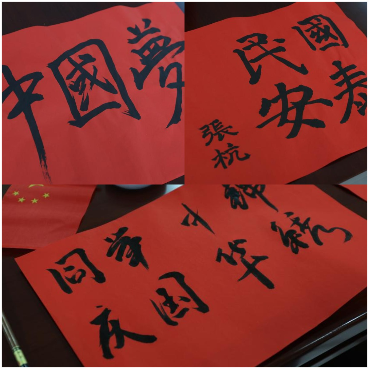 书法体验环节更是将现场气氛推向了高潮。同学们纷纷挥毫泼墨,用一笔一划书写着对祖国的美好祝愿。活动现场不仅为硬笔书法行家们提供了展示才华的空间,也为挥毫泼墨的软笔书法爱好者备好了笔墨纸砚。大家相互交流学习心得和体验,共同感受书法艺术的魅力。