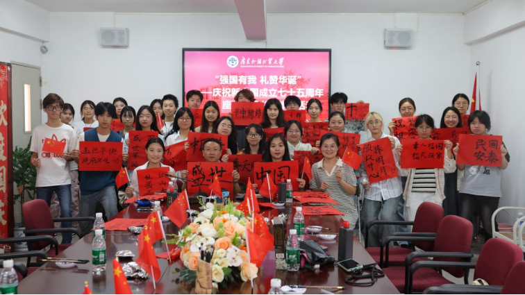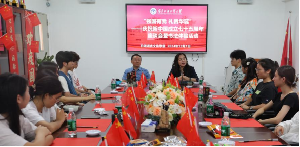 10月1日,日语学院在白云山校区一教北333室举办“强国有我,礼赞华诞”——庆祝新中国成立七十五周年学生座谈会暨书法体验活动。此次活动旨在弘扬爱国主义精神,传承中华优秀传统文化,并促进师生间的交流。