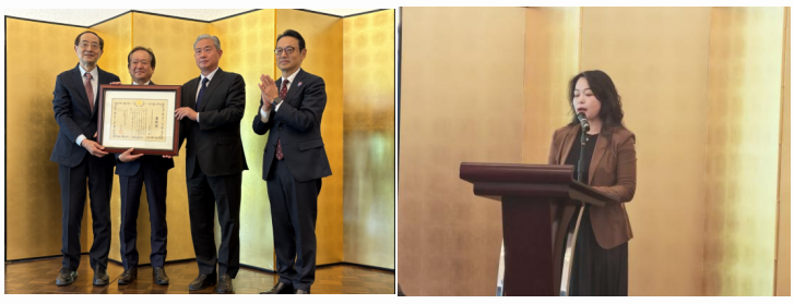 近日,中华全国日语演讲比赛获日本外务省在外公馆长表彰仪式在日本驻中国大使官邸举行。中国教育国际交流协会副秘书长王鲁新与合作主办方日本经济新闻社、中日学术交流中心的代表共同出席活动,日本驻华大使金杉宪治现场颁奖。比赛的评委专家、地区决赛承办院校、赞助商及支持单位、往届参赛选手等代表约50人出席活动。广东外语外贸大学日语语言文化学院院长杨晓辉教授作为承办高校代表受邀出席并致辞。