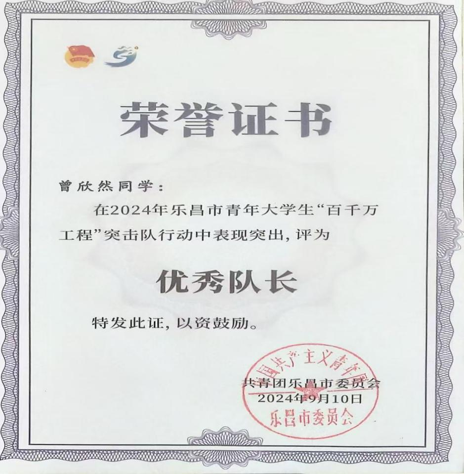 “坪”步青云队长曾欣然被评为“百千万工程”突击队优秀队长称号