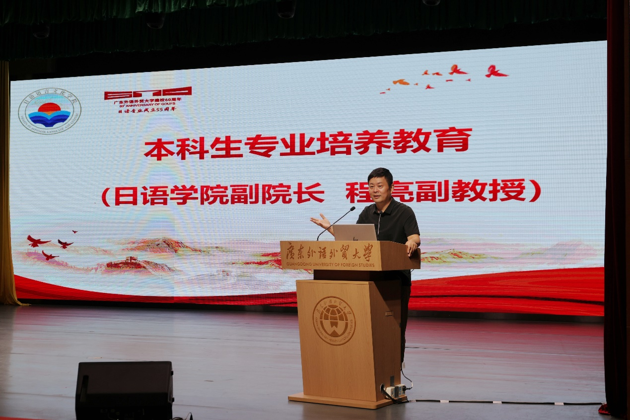 学院副院长程亮副教授为2025级本科新生带来了本科生专业培养教育讲座。他用日语对新生们进行了亲切的问候。在讲座中,他指出学院为2025级新生制定了专门的培养方案,希望同学们能在广外好好生活、好好学习。