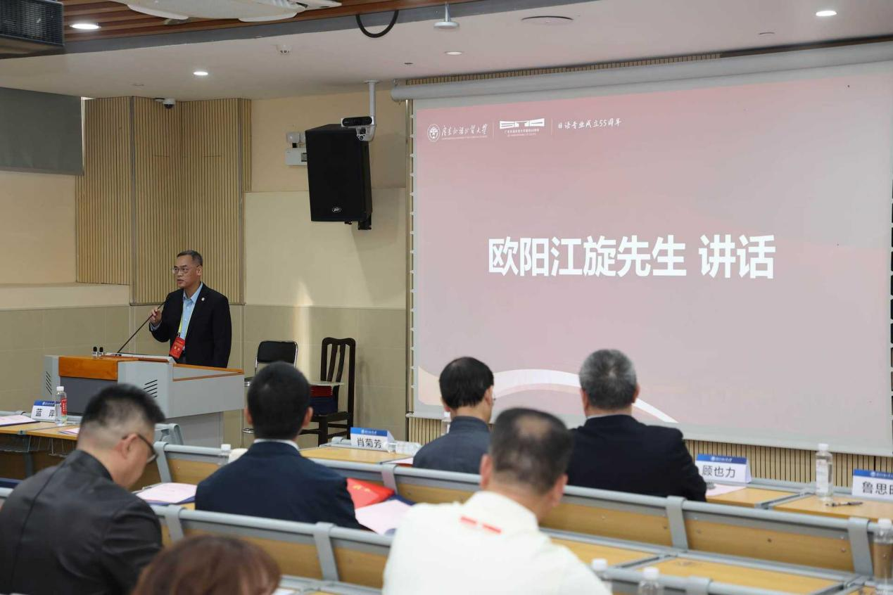 日语学院校友会顾问、79级杰出校友欧阳江旋发表讲话。他深情表示,在新的平台上,要进一步巩固和加深校友与学校的联系,推动校友工作再上新台阶,祝愿学院和校友会事业蒸蒸日上、蓬勃发展。