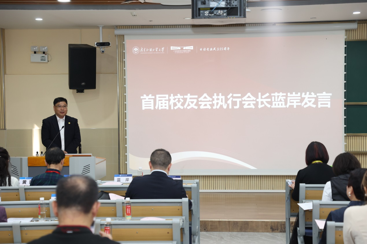 首届校友会执行会长蓝岸校友在发言中祝贺第二届理事会成员当选,并感谢过去五年首届理事会成员的辛勤付出与无私奉献。