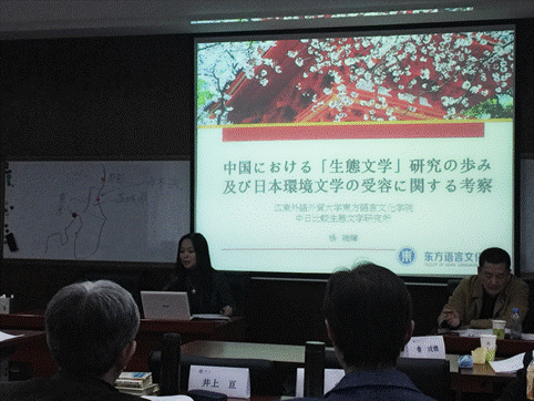 中日韩三国学者围绕“生命与环境”这一主题,分别从历史学、文学、文化等研究领域出发,用日文就东亚历史中的民俗、自然环境、灾害等议题发表演讲。我院中日比较生态文学研究所杨晓辉教授应邀作了“中国生态文学研究及日本生态文学在中国的受容现状”的专题演讲,并在会上与日本生态文学研究第一人野田研一教授等日韩学者就生态文学研究进行了热烈讨论和深入探讨。