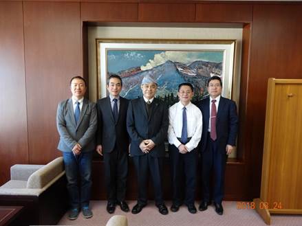 宋伍强老师和孟丁教授等与札幌大学校长铃木淳一教授(居中)等领导合影