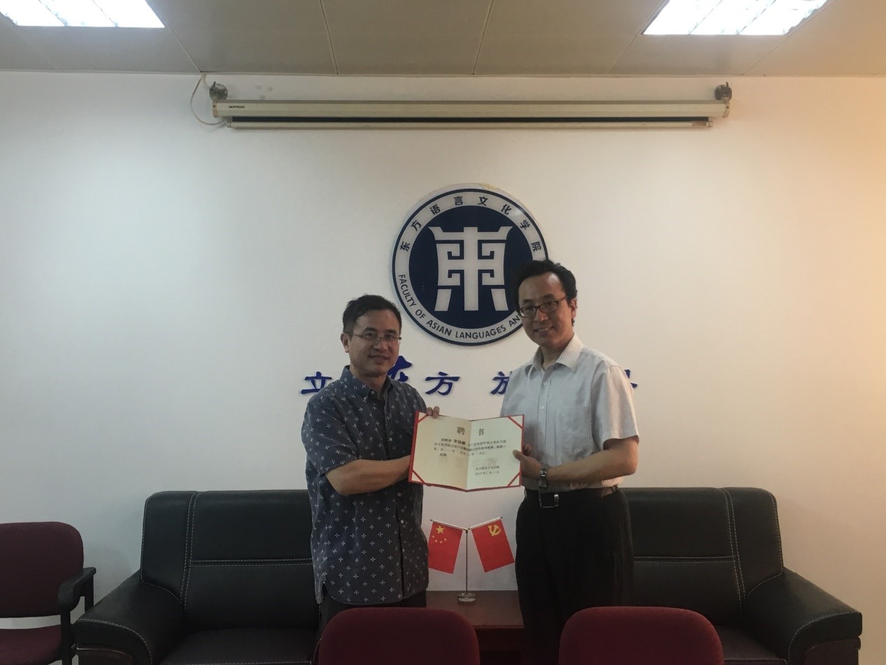 此外,宋协毅教授来访期间,还参加了日语硕士生的毕业论文答辩。陈多友院长向宋协毅教授颁发了日语口译翻译硕士校外指导教师聘书。