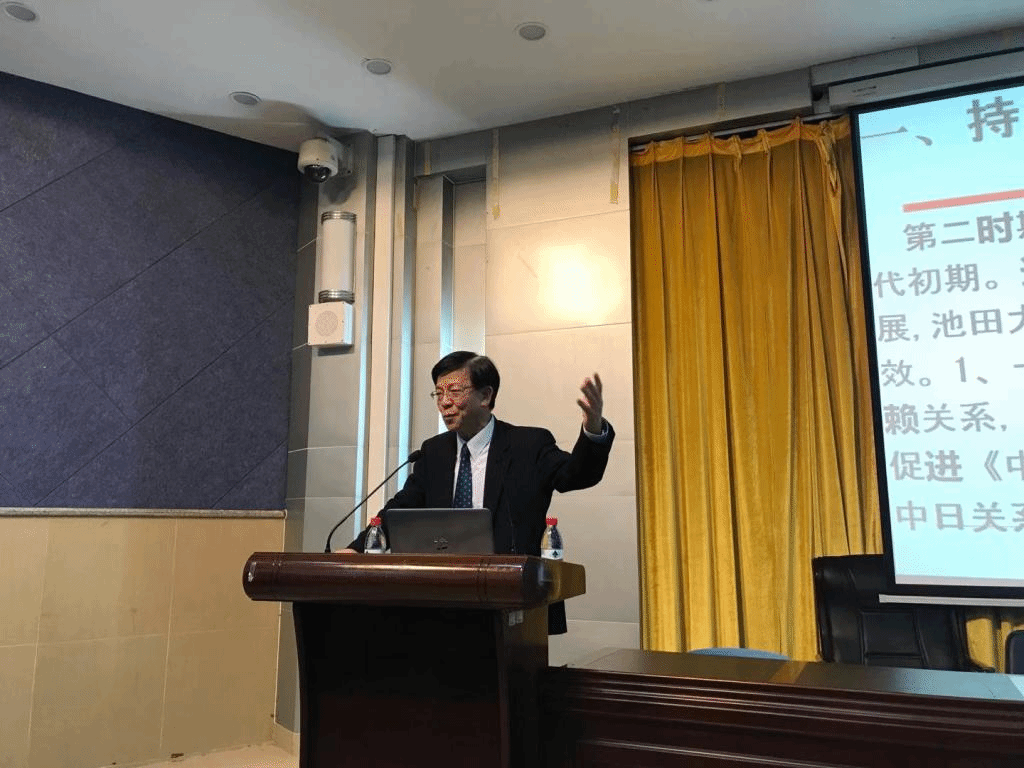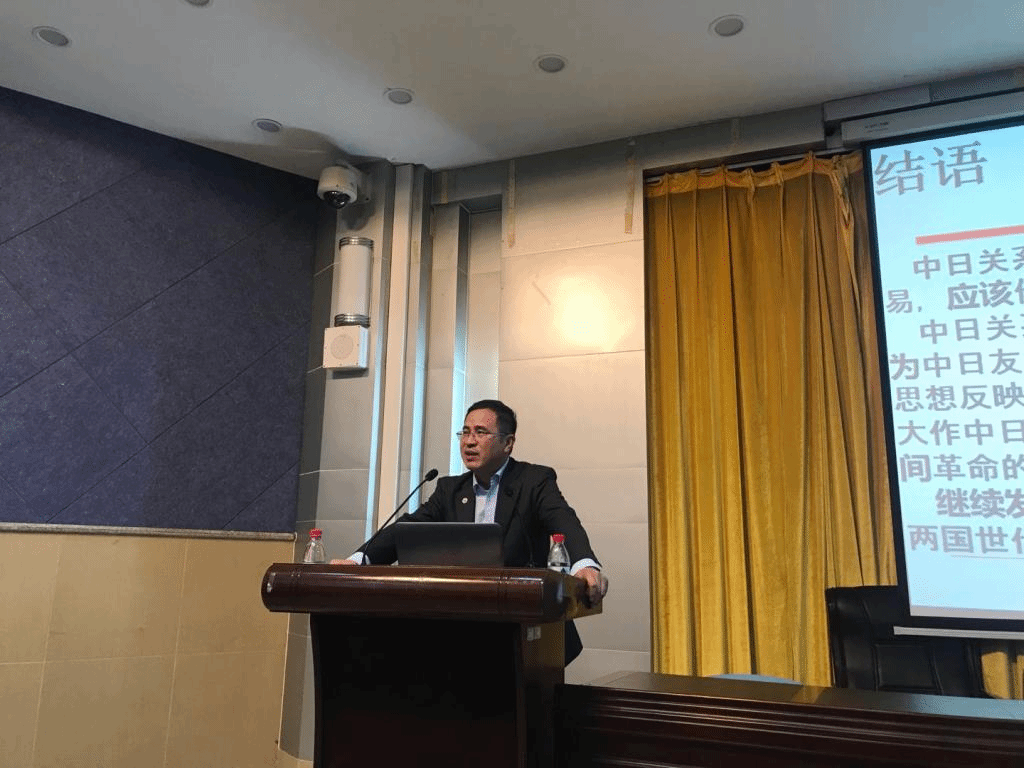 汪鸿祥教授首先向在场师生介绍了创价学会名誉会长、创价大学创办人池田大作先生的中日友好实践活动及其思想。汪教授将池田大作先生的实践活动分为三个时期:1、1960年代至1972年中日邦交正常化之前;2、中日邦交正常化到90年代初;3、90年代中期至今,具体介绍了池田大作先生的中日友好实践活动。同时,汪教授还跟在场的老师和同学分享了他自己与池田大作先生交流的故事。其后,汪教授指出了,池田大作先生中日友好实践活动背后的“人间主义”思想,认为池田大作先生的该思想同中国领导人提出的“人类命运共同体”思想有异曲同工之处。
