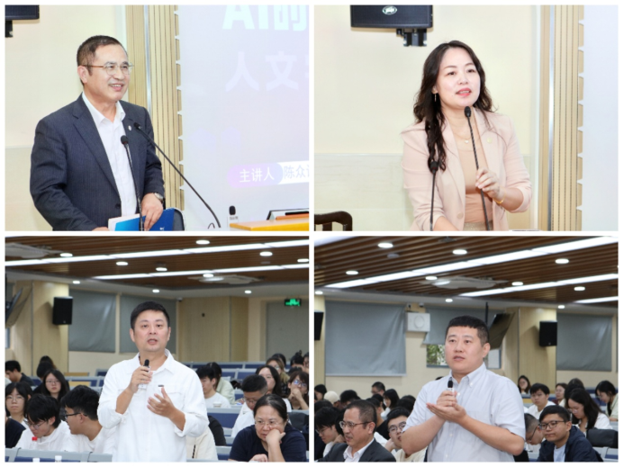 在对谈环节,陈众议教授与我院杨晓辉教授、程亮副教授和丁跃斌教授等教师就“AI时代的东亚学科定位”“外语学科如何迎接AI挑战”“AI数据库的版权边界”等问题进行深入交流。最后,陈众议勉励青年学子勤读经典、厚植家国情怀,在技术洪流中“让中华文化熠熠生辉”。