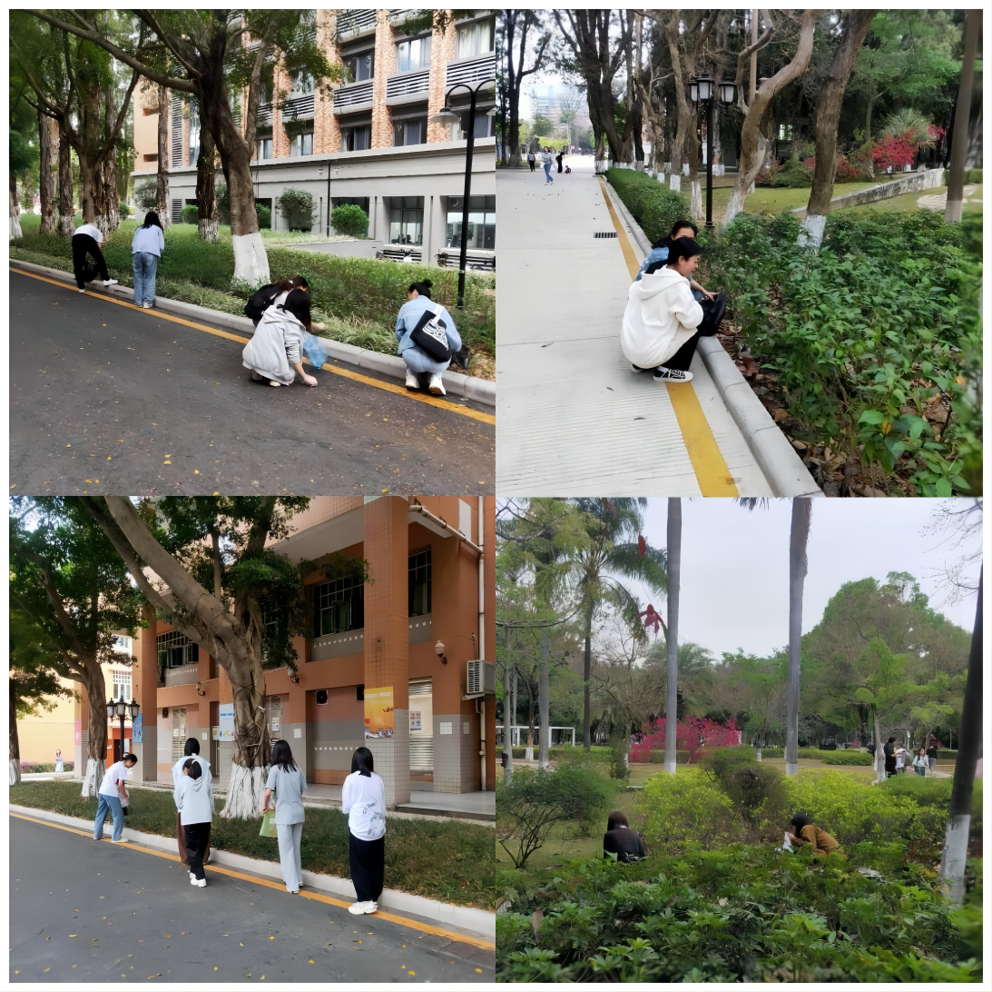 志愿活动中,组长安排好分工,成员们积极参与,互相配合,一丝不苟清理图书馆道路边的垃圾。校道上的落叶和草丛里的纸屑、塑料袋等通通被收入垃圾袋内,同学们所过之处,干净整洁,充分发扬不怕苦、不怕累、不怕脏的精神,为美化校园环境做出了贡献。