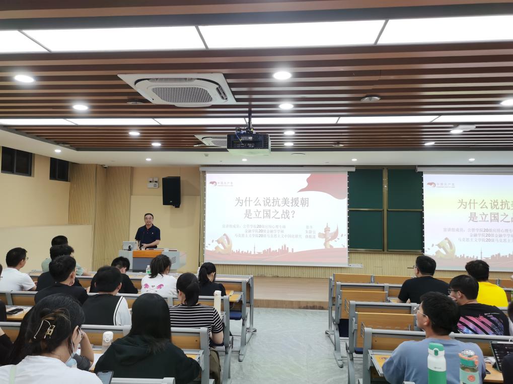 本次讲座的主讲人张冬来自学校“百年党史”大学生宣讲团,他身穿戎装,以自己在军旅生活中学习教育经历为切入点,围绕抗美援朝主题开讲。抗美援朝战争是中国人民保卫和平、反抗侵略的正义之战,打出了新中国的国威和人民军队的军威。张冬结合当下热播的爱国主义电影《长津湖》,引人入胜地讲述志愿军排除万难、战胜侵略者的真实历史,引导同学们深刻感悟伟大抗美援朝精神,珍惜来之不易的和平生活,为中华民族伟大复兴继续努力奋斗。