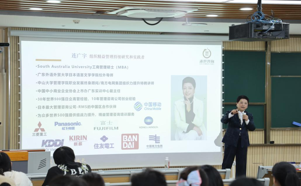 麦叶青校友以“立足中国,面向世界,拥抱未来”为主题,分享了自己从日语专业学生到跨国企业高管的成长历程。他特别强调语言基础的重要性,建议同学们在掌握专业知识的同时,广泛学习跨领域知识,培养国际视野,为未来职业发展做好充分准备。
