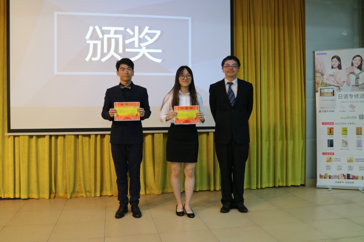 黄畅(中)在卡西欧日语演讲比赛中获奖