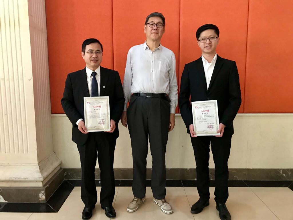 《人民中国》杂志社总编辑王众一(中)、指导教师陈多友教授(左)及唐楚辉(右)