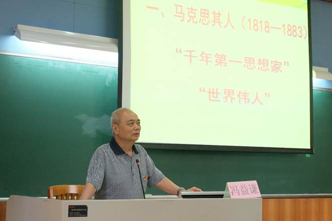 又讯 4月26日下午,我院第一期“青马班”顺利开班后,冯益谦教授受邀于七教107教室作《走进马克思——纪念伟人诞辰200周年》的讲座。讲座由学院党委副书记曾智鹏主持。