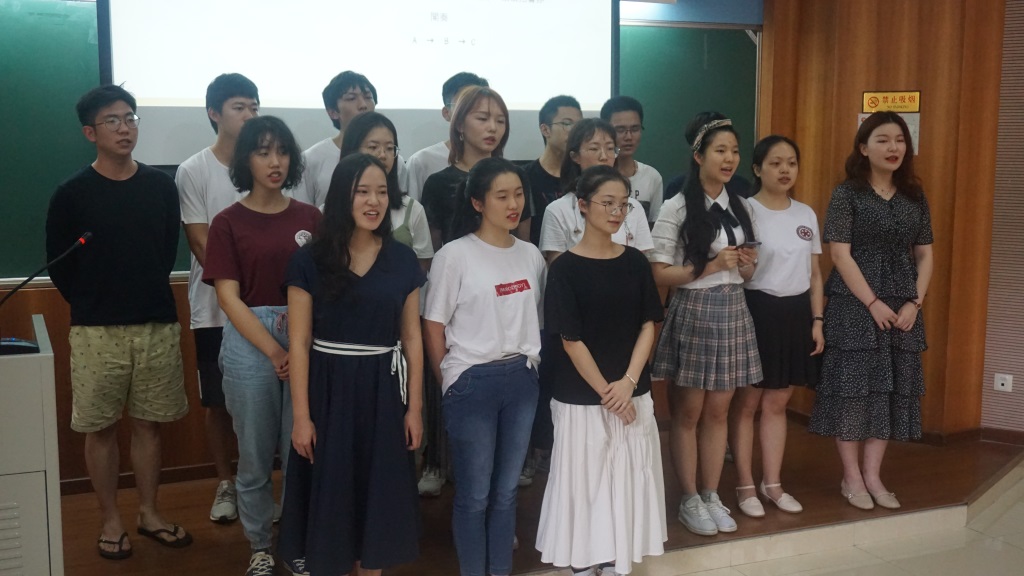 在中日韩三位主持人宣布活动开始后,日语(中日韩亚洲校园计划)专业2018级学生带来了开场曲《那些年》,现场的日本、韩国留学生们也加入了合唱的行列,场面温馨欢乐。