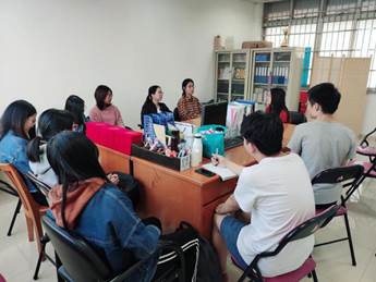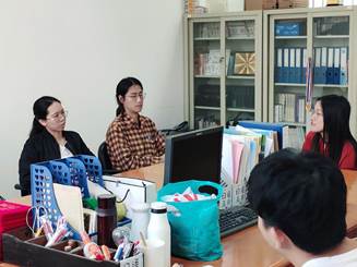 各班代表在平等、轻松、开放的氛围中就各班毕业就业意向及实习或求职过程中遇到的困难与辅导员老师展开交流。辅导员许楚欣仔细倾听并针对同学们的问题进行了现场解答。