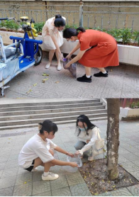 活动中,发展对象积极参与,热情饱满,积极投入到校道清洁工作中。发展对象自备环保垃圾袋和扫把等清洁工具,共同劳动,认真清理草丛中和校道上掉落的塑料袋和瓶盖等垃圾,并将垃圾相应地分类处理。