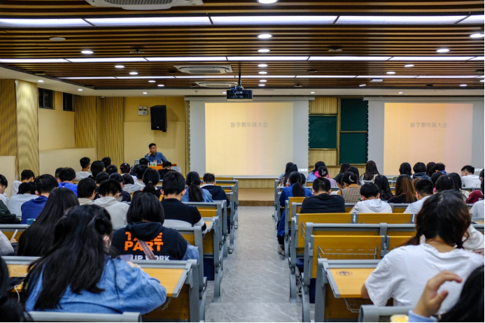 本网讯 千帆竞发,奋楫者进。为进一步推动学院新学期学生工作的顺利开展,2023年2月18日和19日晚,日语学院新学期年级大会分别于一教南110和一教南109教室举行。学院辅导员朱浩文和孙小星老师分别主讲,学院全体本科生参与本次大会。